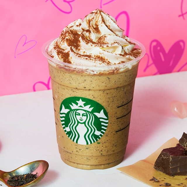 華やかな香りのミルクティーに、チョコレートの風味と食感をアクセントにしたフラペチーノ®